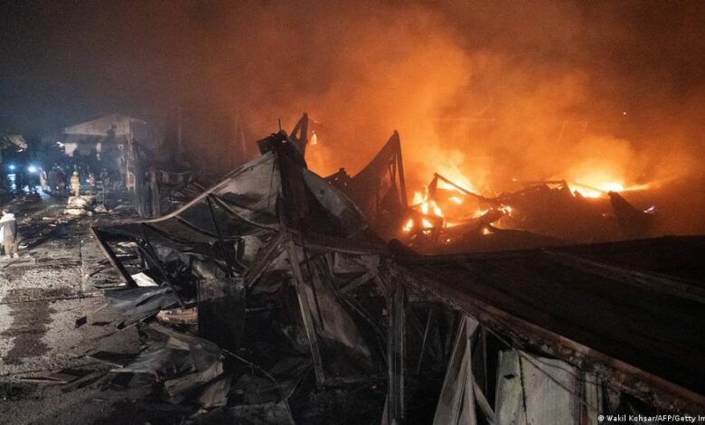 وأظهرت لقطات من وسائل الإعلام المحلية التقطت خلال ​الليل ألسنة اللهب وهي تلتهم مبنى من طابق واحد، بينما كان الدخان الكثيف يتصاعد من قسم آخر من المجمع نفسه، وكان العمال ينقلون الجثث على نقالات. وقال سائق ​سيارة الإسعاف الحاج فهيم “عندما وصلت (الليلة ‌الماضية)، رأيت أن كل شيء يحترق، والناس يحترقون… وفي الصباح الباكر اتصلوا بي مرة أخرى وطلبوا مني العودة لأن هناك جثثا لا تزال تحت الأنقاض”.