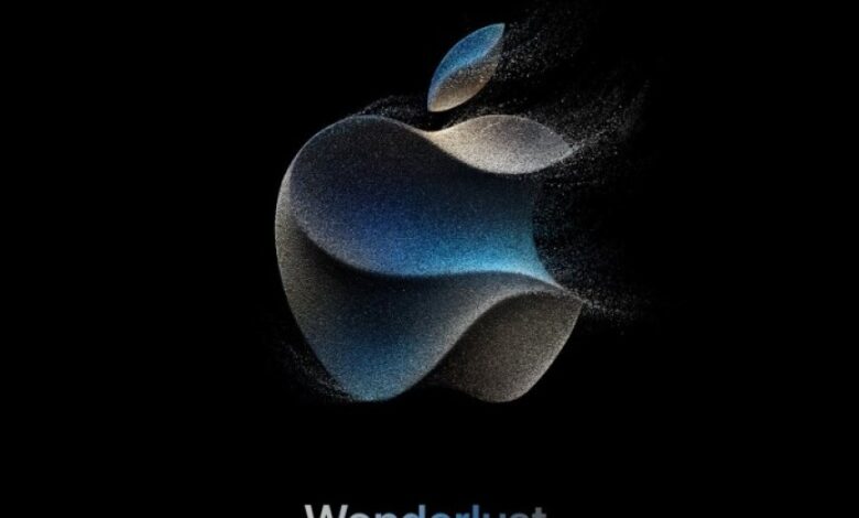 تُظهر دعوة الحدث شعار أبل في الأعلى، على شكل حبيبات رمل باللون الرمادي والأزرق والفضي. يكاد يكون من المؤكد أن هذه إشارة إلى أيفون 15 برو، الذي ترددت شائعات كبيرة أنه سيأتي بألوان الأسود والفضي والرمادي والأزرق الداكن هذا العام. يوجد أسفل شعار أبل نص ملون بالمثل يقرأ “Wonderlust”.