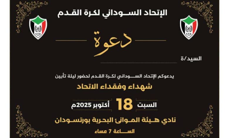 الإتحاد السوداني لكرة القدم يؤبن شهدائه وفقدائه مساء اليوم ببورتسودان