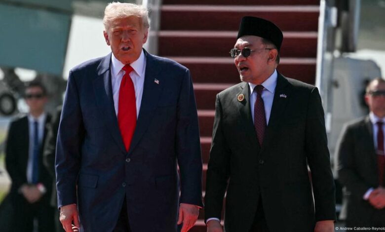 وصل الرئيس الأميركي دونالد ترامب صباح الأحد (26 أكتوبر/تشرين الأول 2025) إلى ماليزيا في المحطة الأولى من جولة أسيوية جديدة يجري خلالها محادثات تجارية تنطوي على رهانات اقتصادية وسياسية كبرى مع نظيره الصيني شي جينبينغ. واستقبل ترامب في مطار كوالالمبور من قبل رئيس الوزراء الماليزي أنور إبراهيم على إيقاع موسيقى ورقص تراثي.