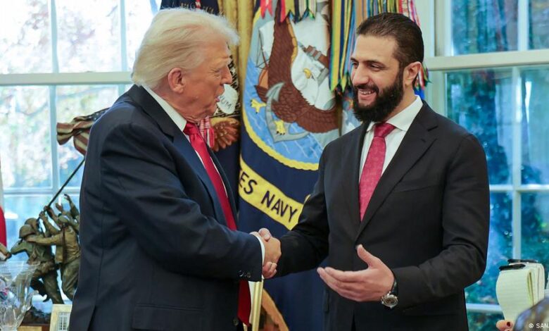 أجرى الرئيس الأمريكي دونالد ترامب محادثات هادئة في البيت الأبيض مع الرئيس السوري أحمد الشرع، القائد السابق في تنظيم القاعدة، في أول زيارة رسمية لرئيس سوري إلى واشنطن. اللقاء يأتي في إطار سعي ترامب لإنهاء عزلة سوريا الدولية المستمرة منذ عقود.