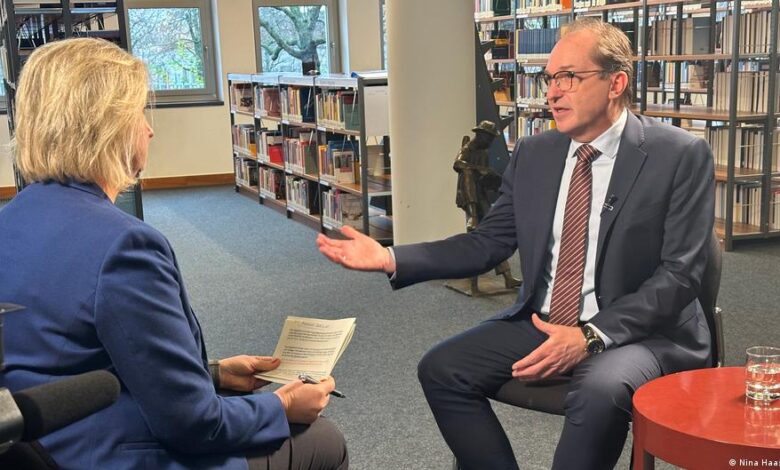 قال وزير الداخلية الألماني ألكسندر دوبرينت  في حوار مع DW  إنه “لم يعد بالكثير” في سياسة الهجرة. ويضيف “موقفي صارم للغاية وهو ما يتضح للجميع. لقد اتخذنا منذ اليوم الأول القرارات اللازمة لضمان تشديد الرقابة على الحدود ورفض دخول المهاجرين”.