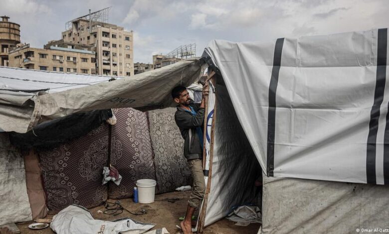وقالت أم محمد عودة البالغة من العمر 45 عاماً والنازحة من شمال قطاع غزة إلى المواصي في الجنوب، لوكالة فرانس برس: “اقتلعت الرياح خيمتنا هذا الصباح، وبقينا تحت المطر لساعات وتبلّل كل ما لدينا”. وأضافت “ليست لدينا خيمة أخرى، ولا أي وسيلة لحماية أنفسنا من هذا الطقس”. وشكا آخرون من حولها من أضرار مماثلة.